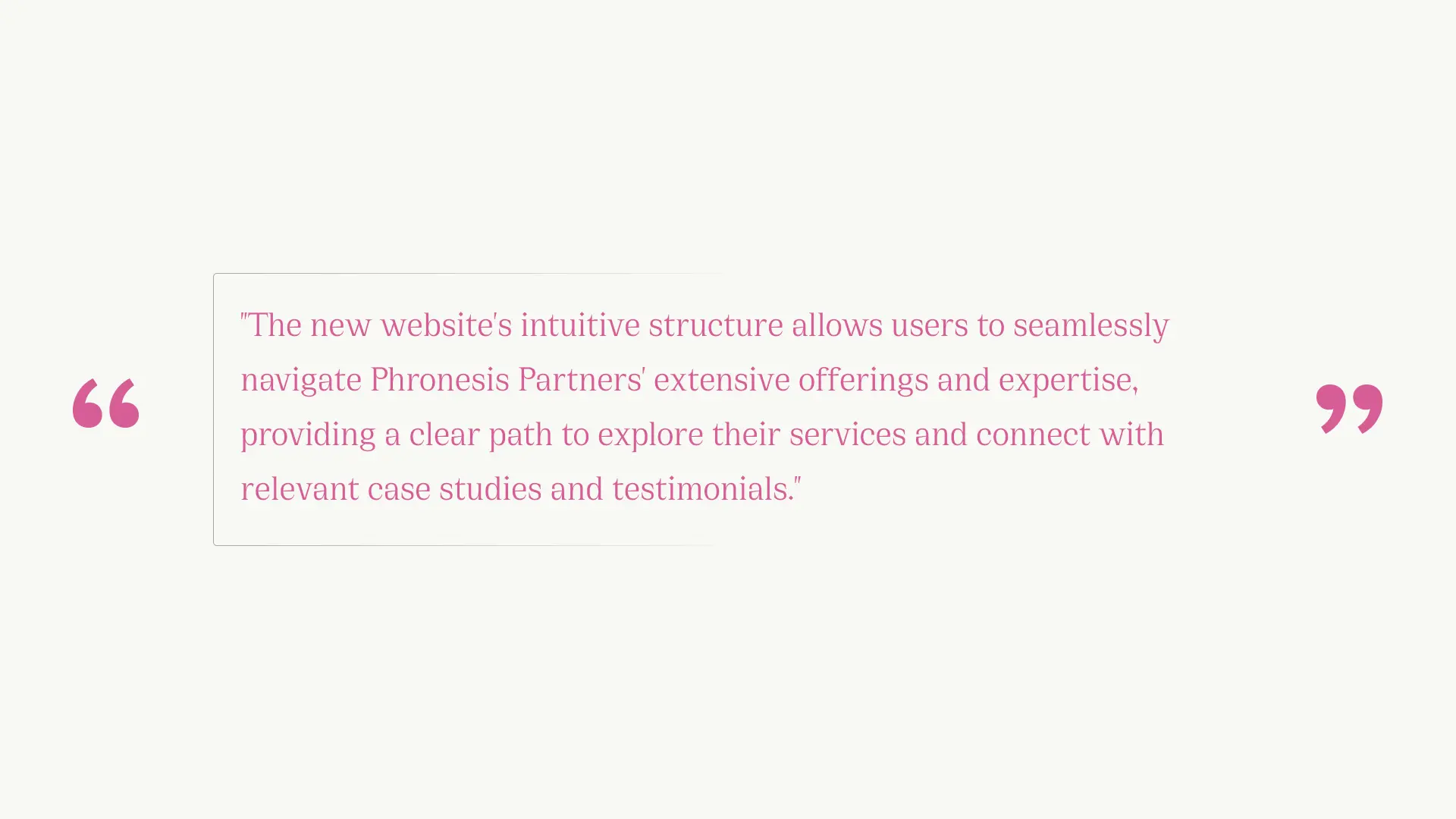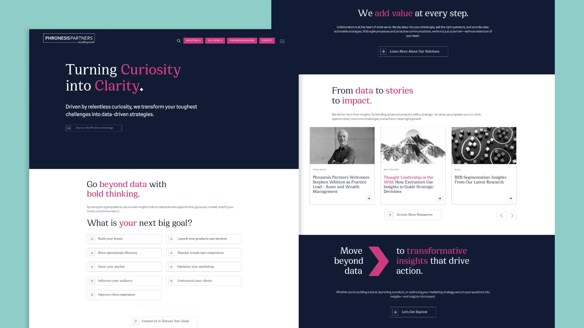 The redesigned Phronesis Partners website effectively communicates its offerings and expertise to its target audience, supporting its goal of delivering transformative insights through a modern, user-friendly digital platform.