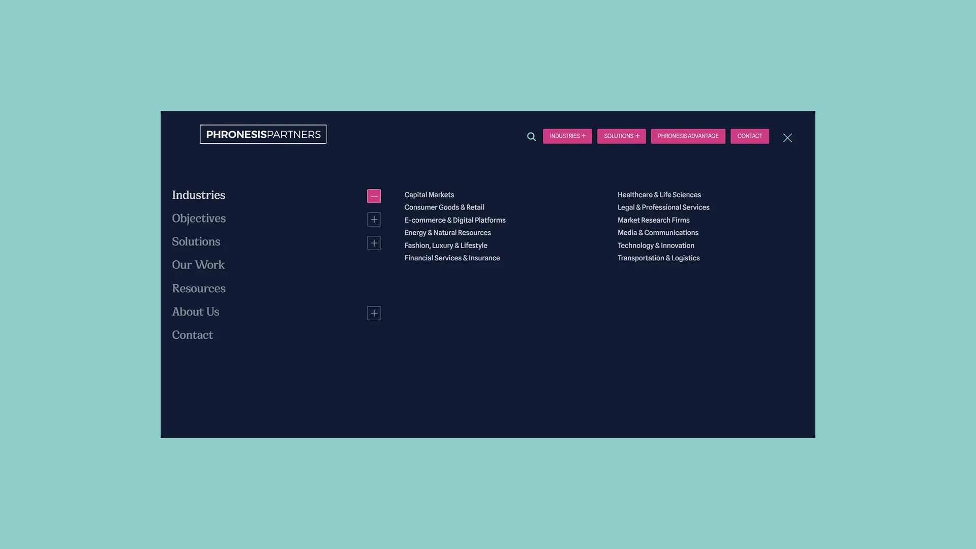 The new website reflects Phronesis Partners' brand and expertise through an updated colour palette that positions them as modern and dependable.