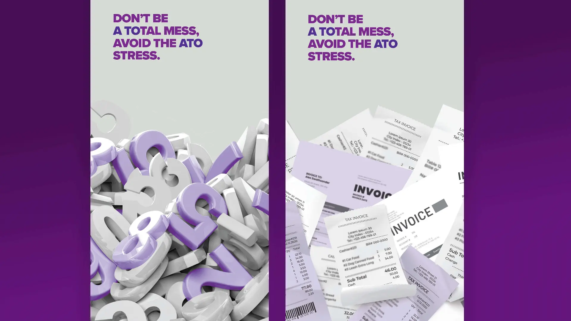 Following the success of the aforementioned 2019 advertising campaign for Accountancy Insurance, the firm were looking for assistance with a campaign that would speak directly to the Australian market. Based on Cubicle Fugitive’s original campaign headline ‘Don’t let the CRA drive you CRA-ZY’, the firm were looking for a headline that targeted the ATO or Australian Taxation Office and used the letters ‘ATO’ in a clever, industry-focused way. A series of brainstorm sessions and research was conducted in order to develop a list of headlines from which the client would make their choice. The firm unanimously decided on “Don’t be A Total mess, Avoid the ATO stress”. Once the headline was decided upon, our design and brand team worked together to develop campaign visuals that not only matched the headline, but could work within the existing campaign that we had developed and launched in 2019. The final result stayed true to Accountancy Insurance’s global advertising campaign elements, but with new, bold, industry-specific imagery.