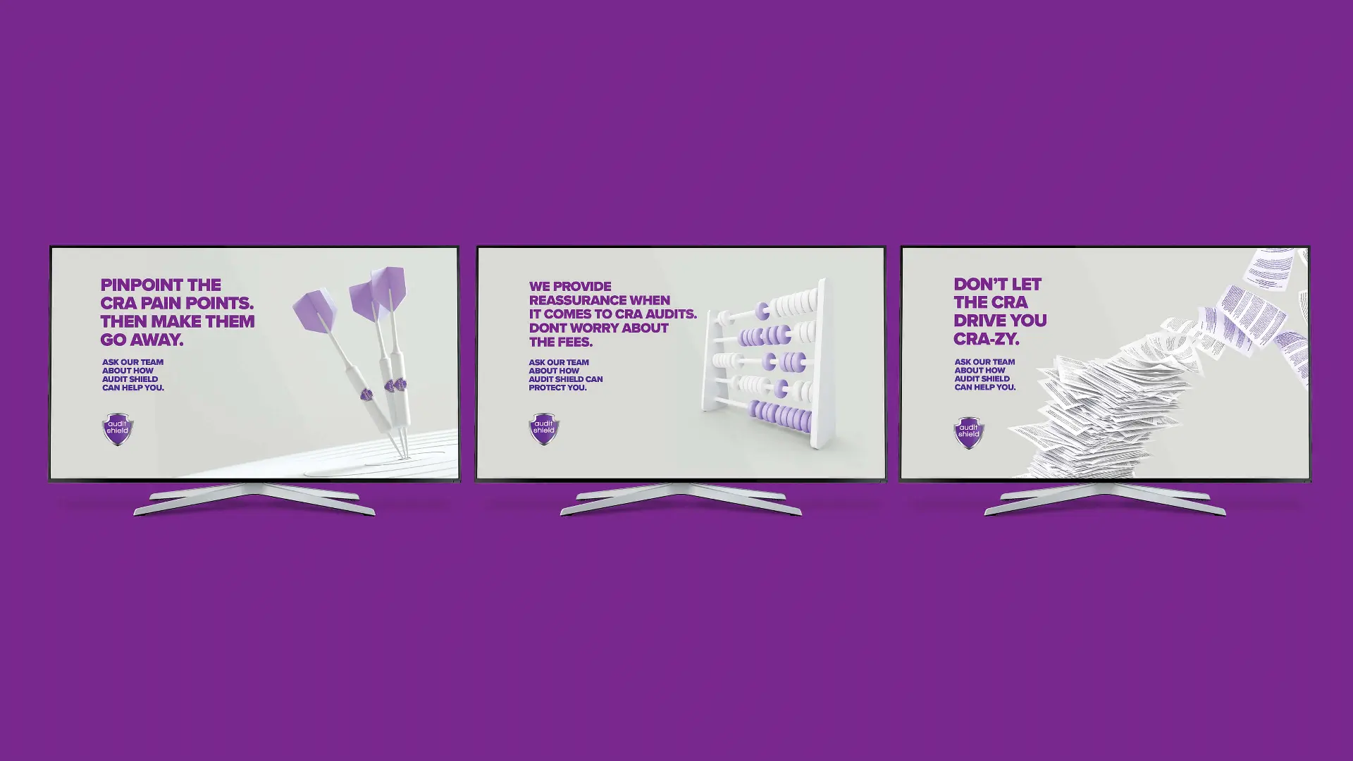 The headlines are a mix of clever, informative, and to the point, reinforcing how Accountancy Insurance can help their clients. The branded purple is a key element that was carried throughout all the new marketing materials. The imagery, like the headlines, balances fun with informative, featuring images that relate back to the copy and the challenges that Accountancy Insurance’s clients regularly face. Together, the headlines and imagery create a playful yet pointed campaign. The campaign included ads in Pivot magazine, TV ads, flyers, postcards, and rack cards. The materials were also designed to be easily maintained by the company’s internal marketing team going forward.