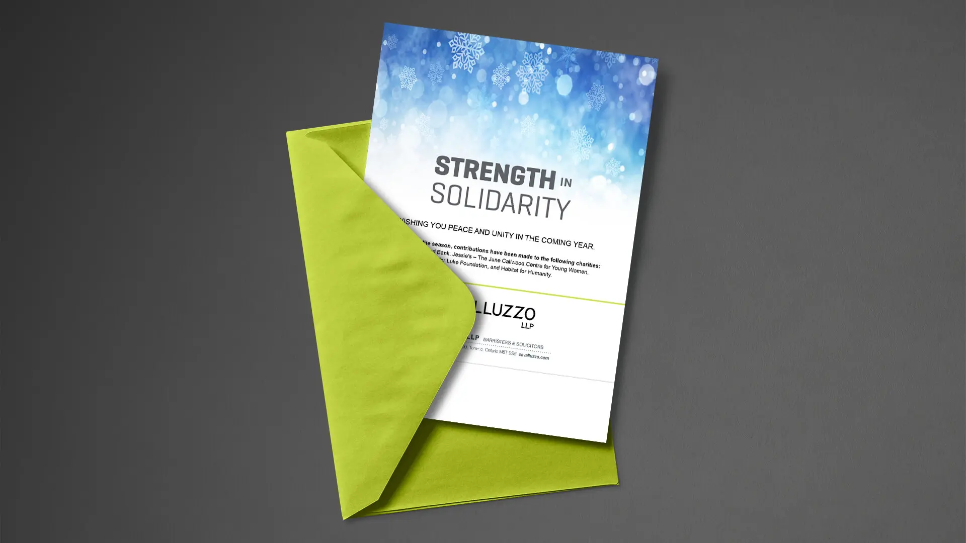 At every turn, there was a constant reminder of the “uncertain times” being faced by all during the pandemic of 2020. And, in a year that was difficult for everyone, a little bit of optimism went a long way. That’s why when Cavalluzzo came to us for help with their holiday card, we saw an opportunity for them to provide some much-needed cheer for their card receivers while showing how the firm is doing its part to help in a time of crisis.