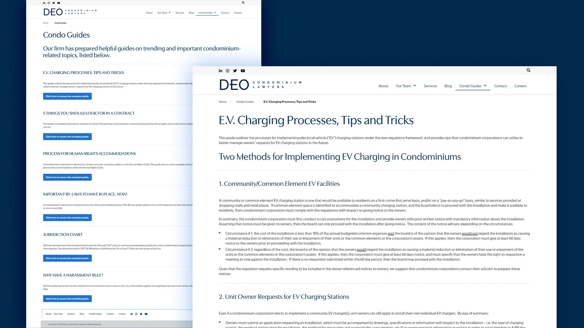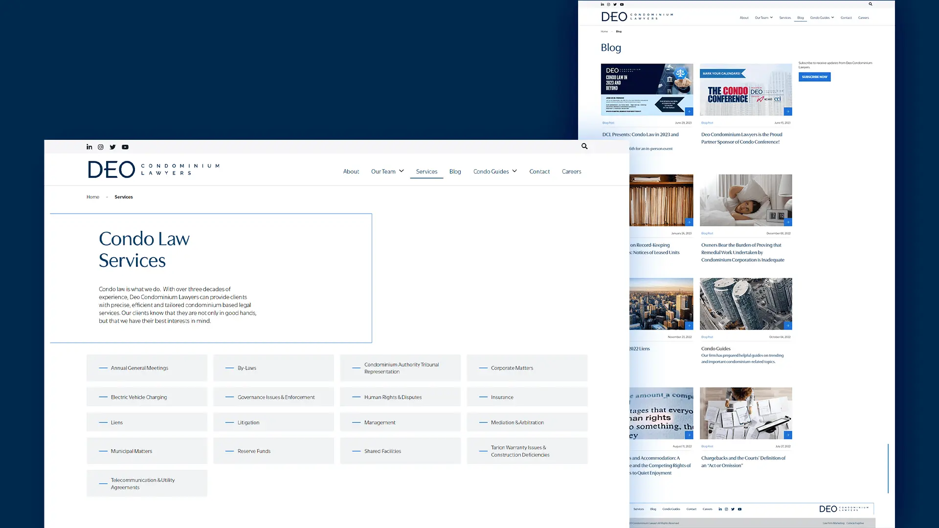 The result is a modern, client-centric, and dynamic website that serves as a valuable tool for DEO Condominium Lawyers as they expand their presence in the GTA legal market.