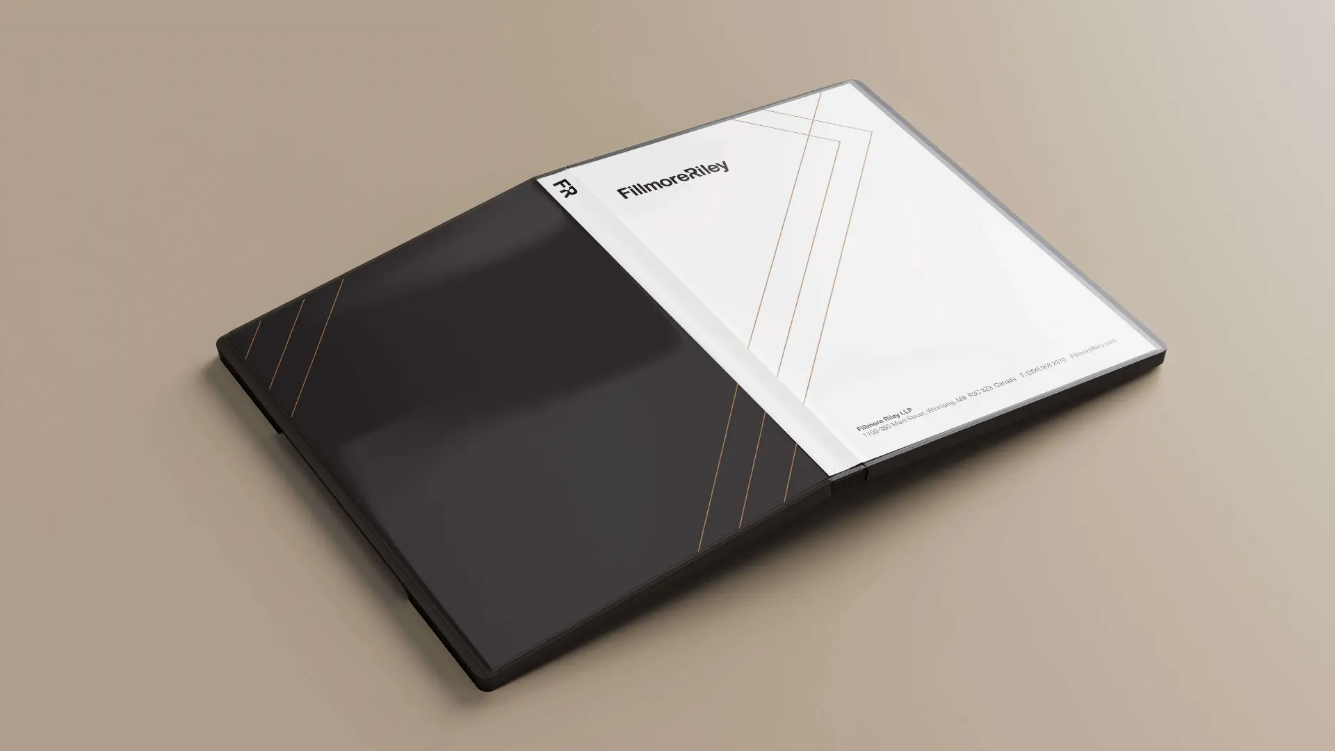 Our design team was inspired by the firm's lawyers, who are both "salt of the earth people" mixed with intelligence, professionalism, and sophistication. We selected a premium colour palette that included rich black, desert sand, bronze, and white, all neutral colours providing depth and high contrast. This deliberate choice highlights Fillmore Riley's premium position in the legal community (represented by black) while expressing its approachable and grounded approach to clients and the local community (represented by beige). The brand fonts were also updated to reflect the modernized brand image. Minerva Modern, a contemporary sans-serif typeface designed by Gábor Kóthay, was selected for headlines. For paragraphs, Neue Haas Unica, a neo-grotesque sans-serif typeface designed by Toshi Omagari, was chosen.