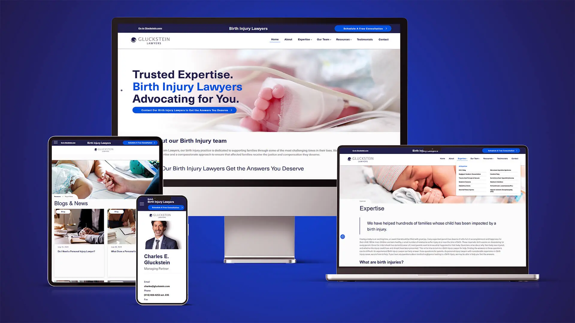 Shortly after launching the Sexual Abuse Microsite, we designed and developed a dedicated site for the firm’s Birth Injury practice group, applying a similar strategic approach tailored to this audience. Insights from analytics, competitor research, and existing firm materials helped shape an optimized content structure and intuitive navigation. The microsite keeps visitors engaged within a focused environment, allowing them to explore relevant resources seamlessly.