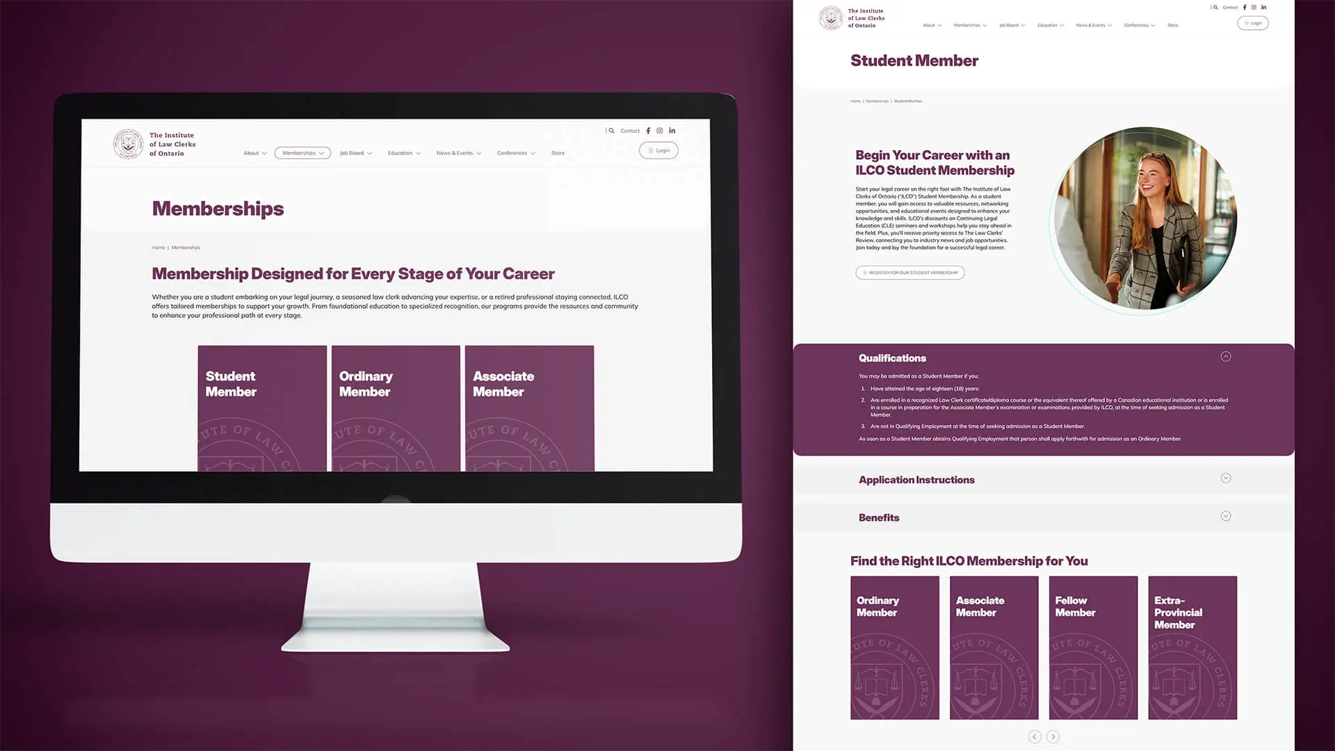 With more than a decade of collaboration behind us, the Institute of Law Clerks of Ontario (ILCO) returned to Cubicle Fugitive to redesign and redevelop its website. While the previous site had served members well for many years, shifting user expectations and an expanding library of content made it clear that ILCO needed a more modern, intuitive, and organized digital platform. Their goals were straightforward: a clean and contemporary design, streamlined navigation, refreshed imagery, and better access to member-focused resources.