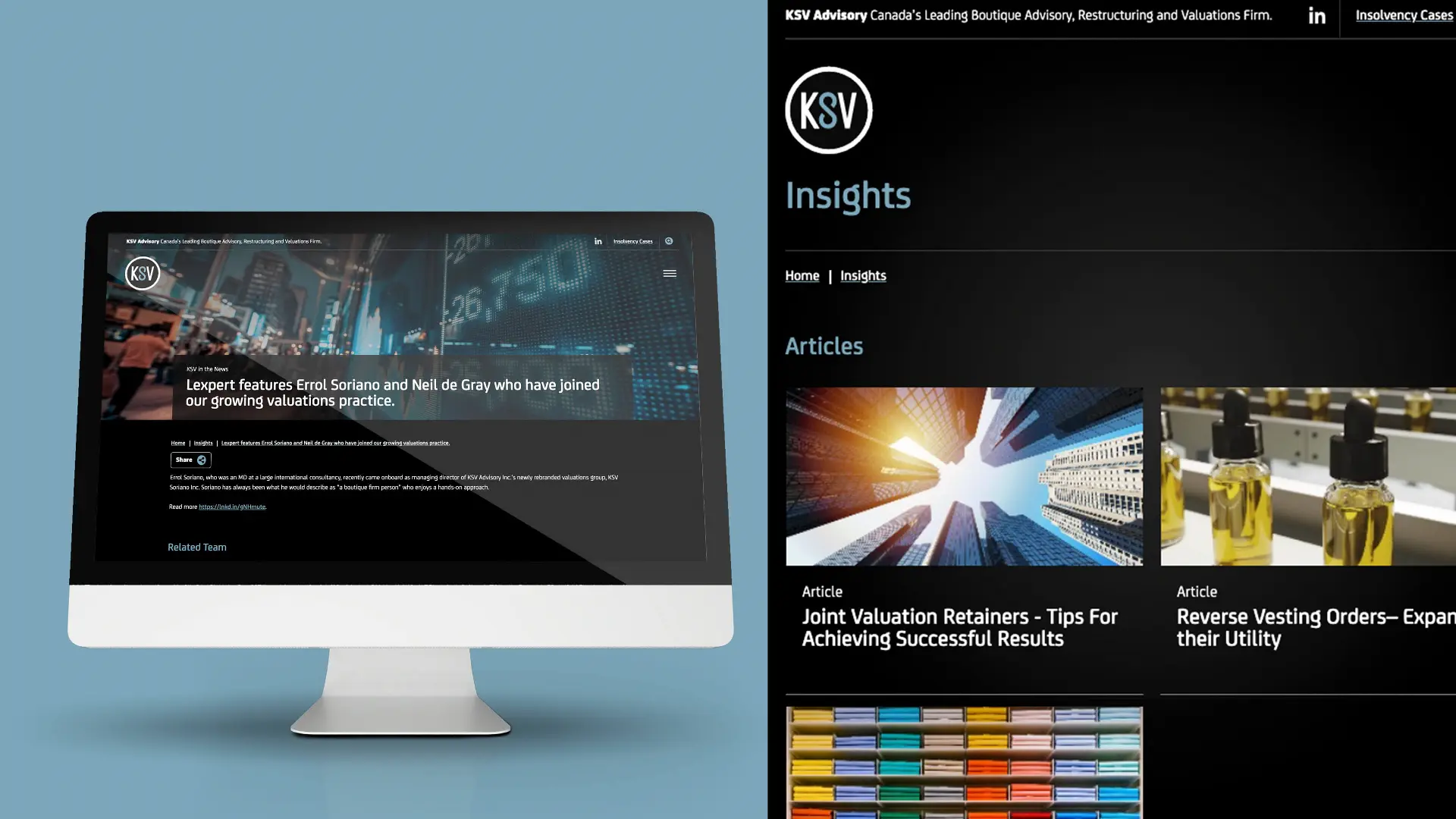 KSV Advisory is one of Canada’s leading financial advisory, restructuring and valuations boutiques. The firm engaged Cubicle Fugitive to restructure and reimagine its new website to highlight its expertise in restructuring, disputes, and valuation advisory. Previously, Cubicle Fugitive had moved the firm’s current website to a new content management platform that was secure and easy to manage internally, utilizing a more robust and administratively friendly platform. It was now time for the firm to refresh its visuals to better represent the calibre of the services it offered.