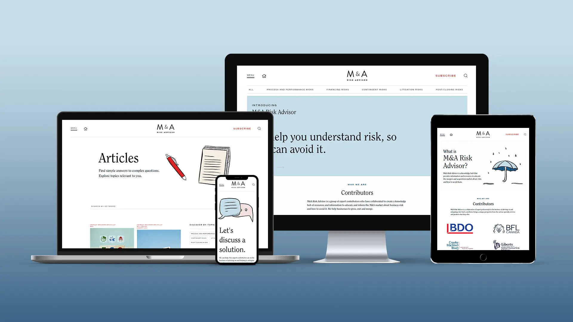 The collaboration between Cubicle Fugitive and Crawley MacKewn Brush LLP has resulted in a well-accessed website for M&A Risk Advisor. The project delivers a unique, engaging, intuitive, and informative platform for business owners, empowering them to succeed in the M&A landscape.