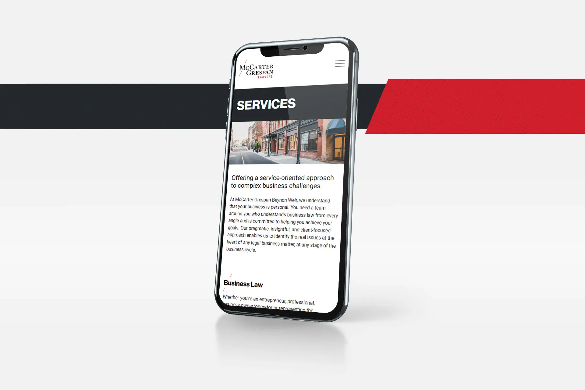 From a visual standpoint, we incorporated the firm’s brand colours and slash from the McCarter Grespan logo into the design and content, ensuring a cohesive theme across all website elements and social media assets.