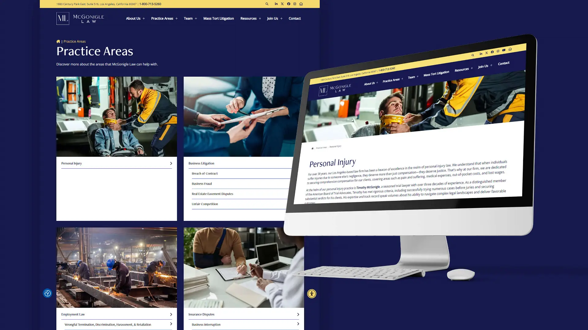 Cubicle Fugitive partnered with McGonigle Law to design and develop a new website that boldly reflected the firm’s deep expertise and impactful litigation work. With nearly four decades of experience in high-stakes legal matters, the firm needed a digital presence that was confident, modern, and easy to navigate and matched its reputation for high-end client service.