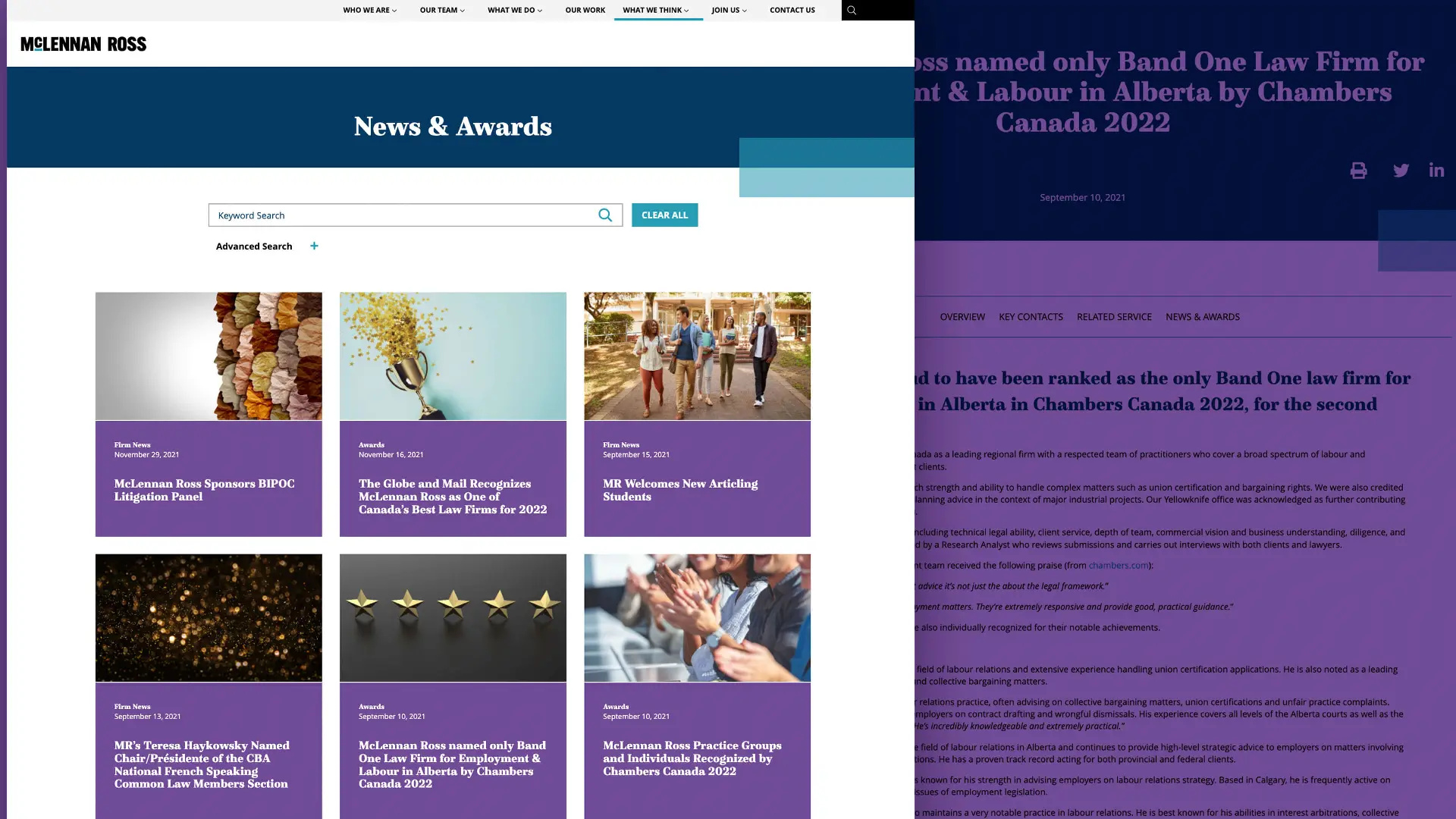 With a commitment to unwavering advocacy, our team advised McLennan Ross on housing representative work on the site that showcased their high-profile matters. We also worked with the firm to rewrite all bios and practice pages, clearly defining McLennan Ross’ work and the “why McLennan Ross” factor. To showcase the firm’s diversity, equity and inclusion efforts, we developed a page highlighting its current, past, and future commitments to allyship, education, awareness, and increasing representation and opportunities within their firm and community.