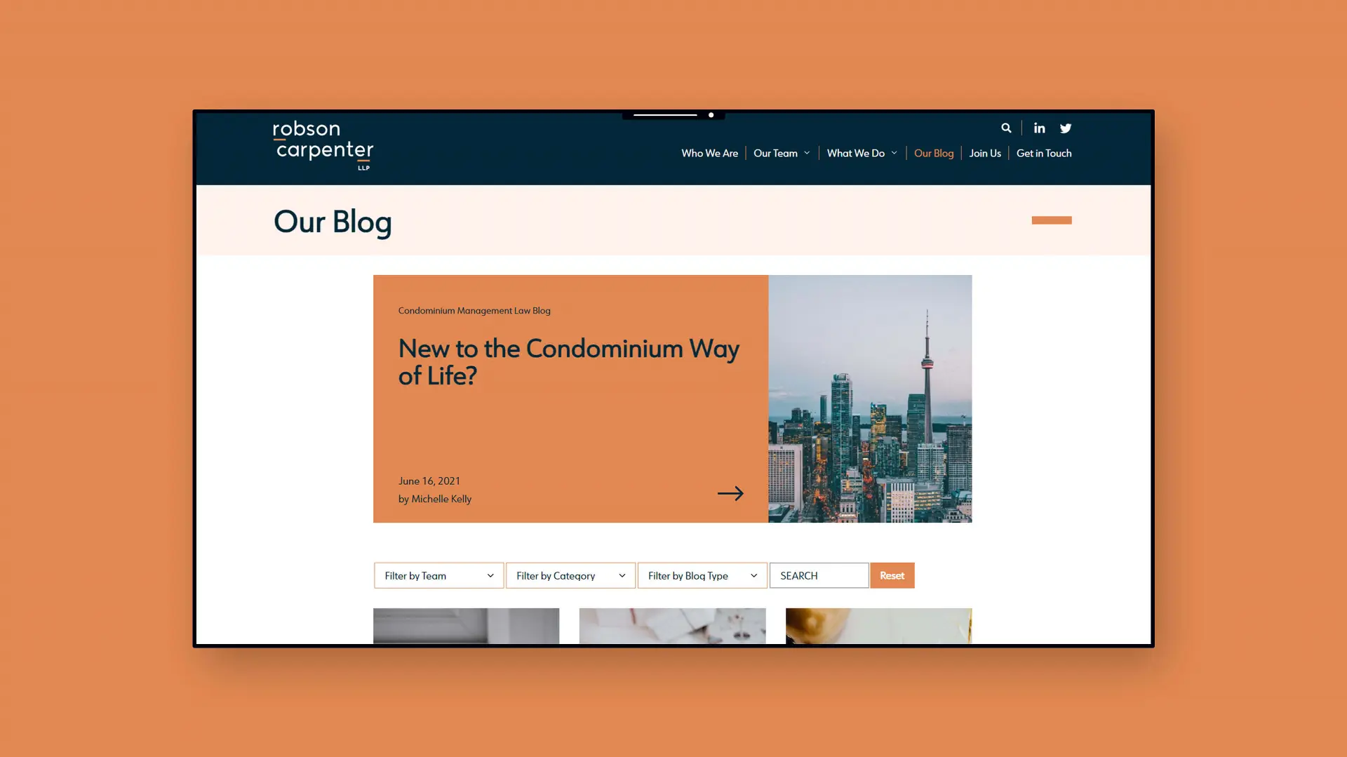 Robson Carpenter LLP approached Cubicle Fugitive about designing a new website that represented the strategic direction of the firm and their goals moving forward.
