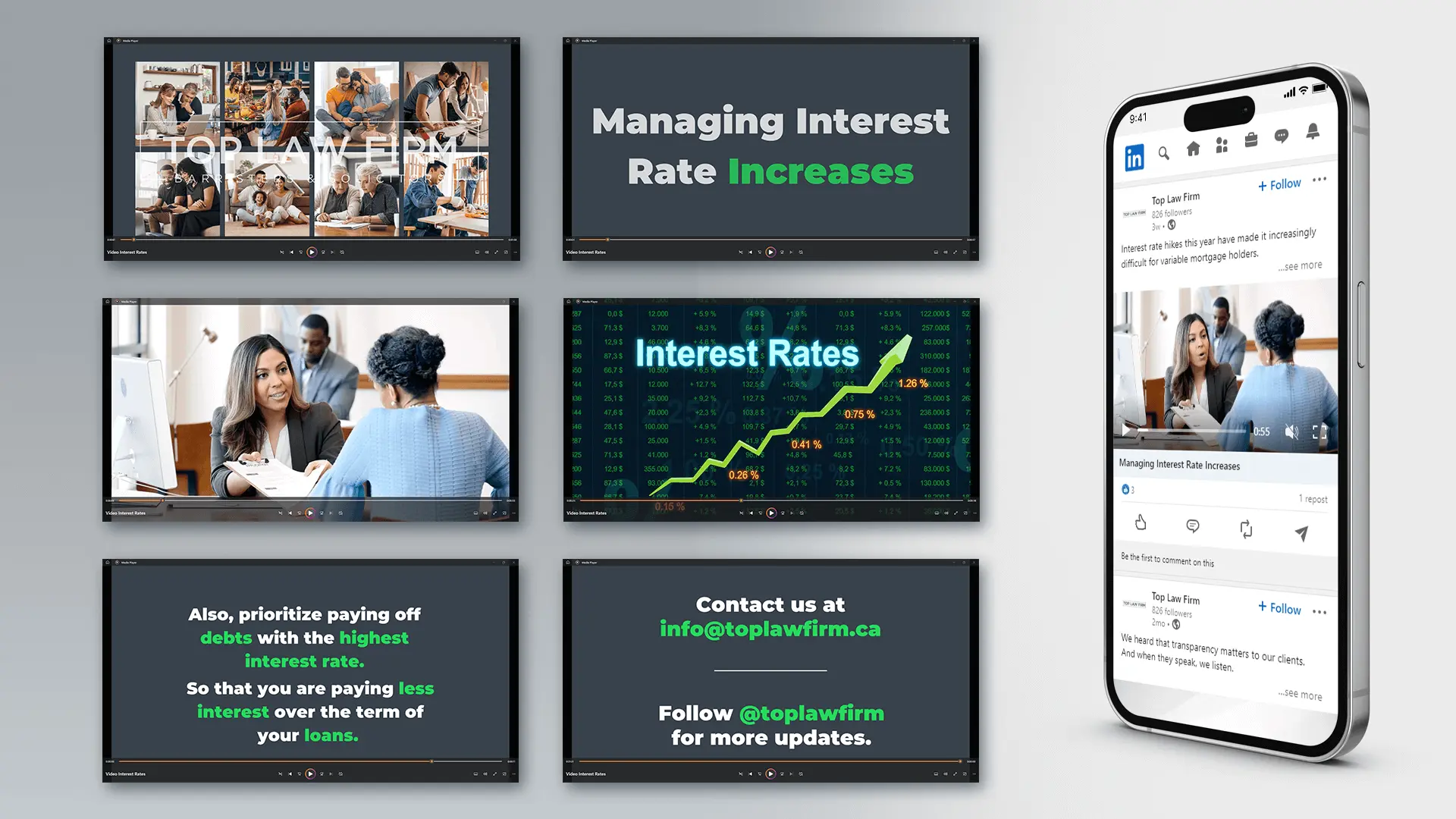 Cubicle Fugitive developed Canva templates for the content the firm wanted to share and tailored these to the various posts required each month. Our social media visuals adhered to the firm's established brand colours but also featured unique design elements. This included using distinctive shapes and imagery strategically to capture the audience's attention and convey specific information about each post. Additionally, we produced visually engaging videos that remained in line with the brand's established visual identity.