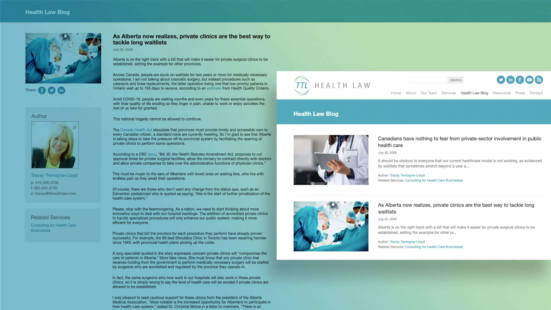 In 2017, Cubicle Fugitive worked with Tracey Tremayne-Lloyd, Founding Principal, at the firm to update the design and functionality of the TTL Health Law website.